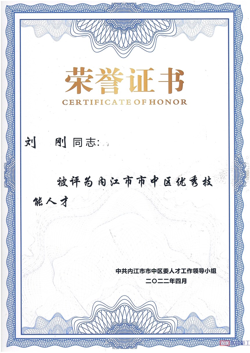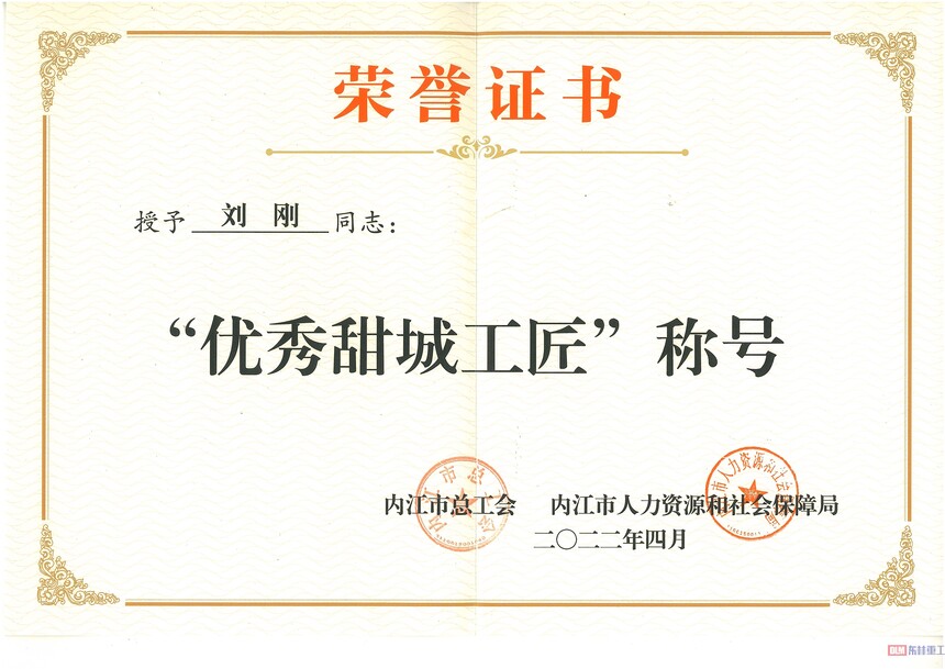 4月28日下午,在内江市总工会举办的“内江市庆祝‘五一’国际劳动节主题活动暨第四届‘甜城工匠’命名仪式”大会上,东林重工刘刚(党员)被评为“十大优秀甜城工匠”受到表彰。